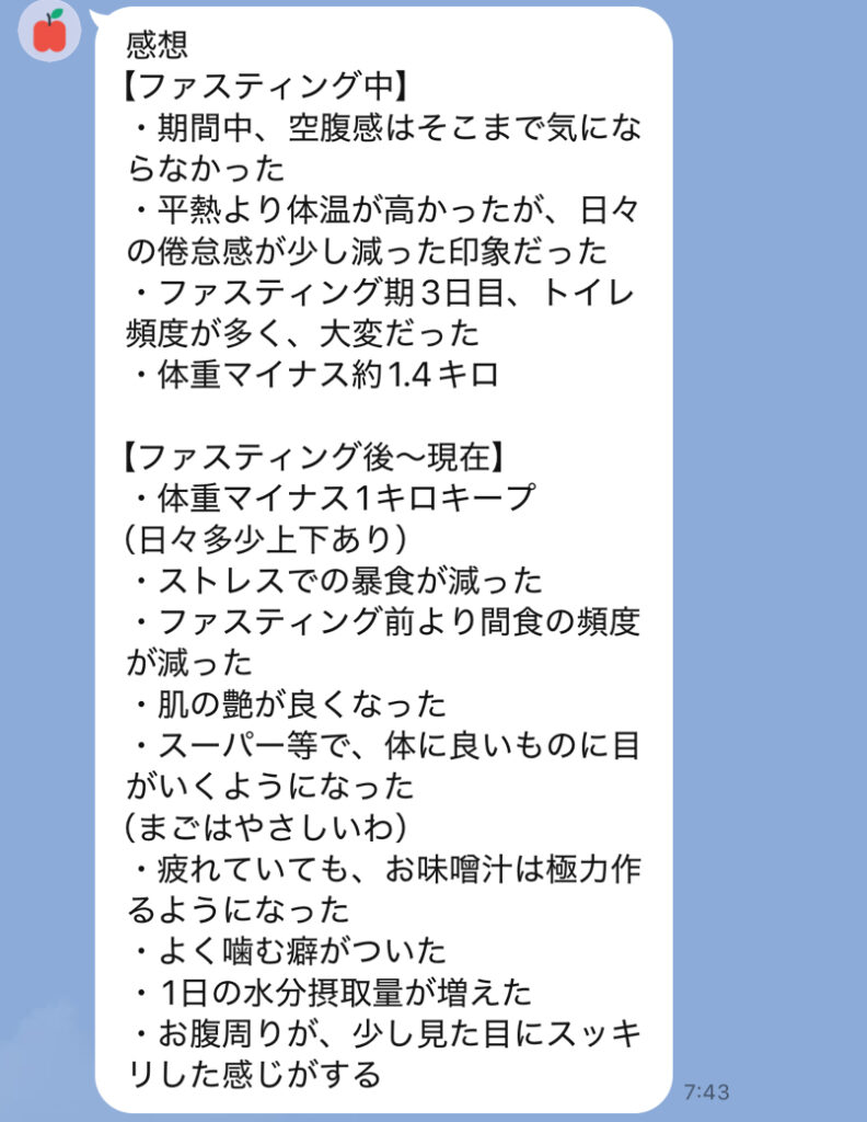 注意:このファスティングは3日間以上の個別サポート付きファスティングではありません。