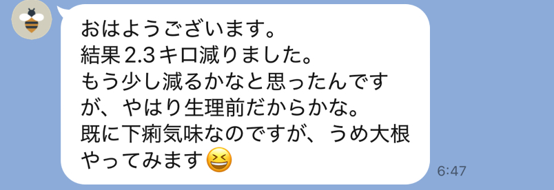 60代のお客様も40代の頃の体重に戻られてキープされています。※1週間でトータル2kg減達成しました!