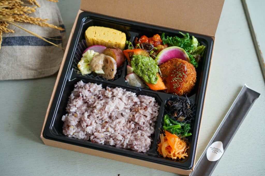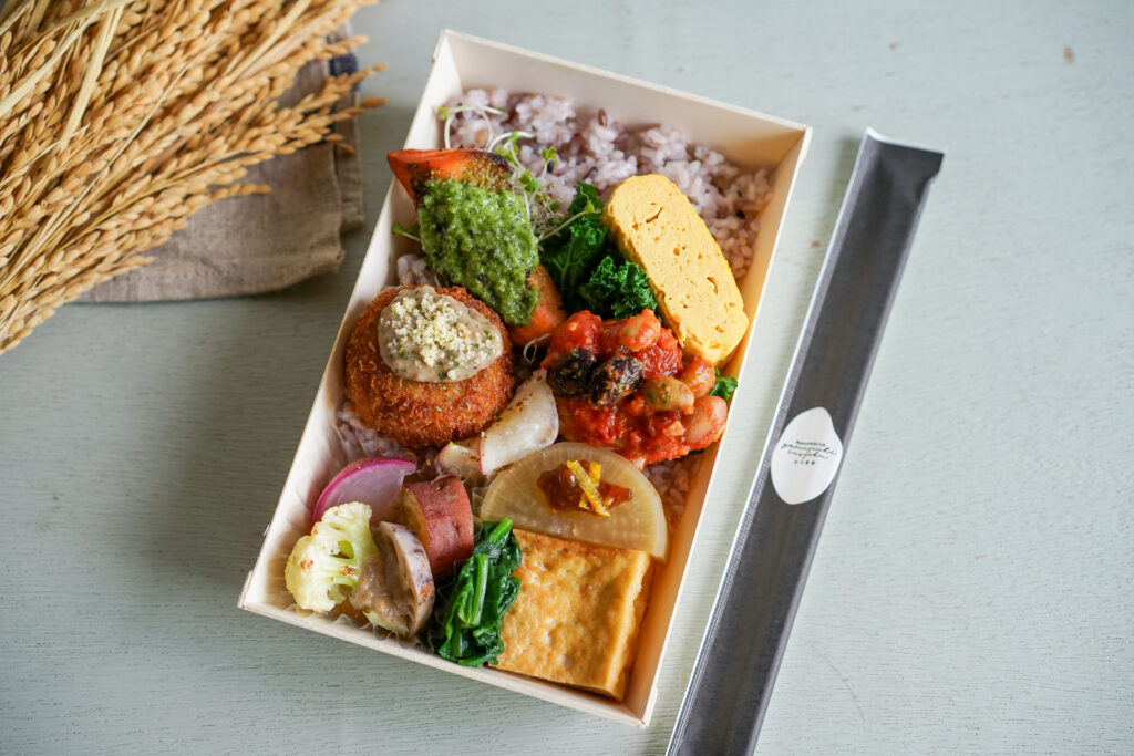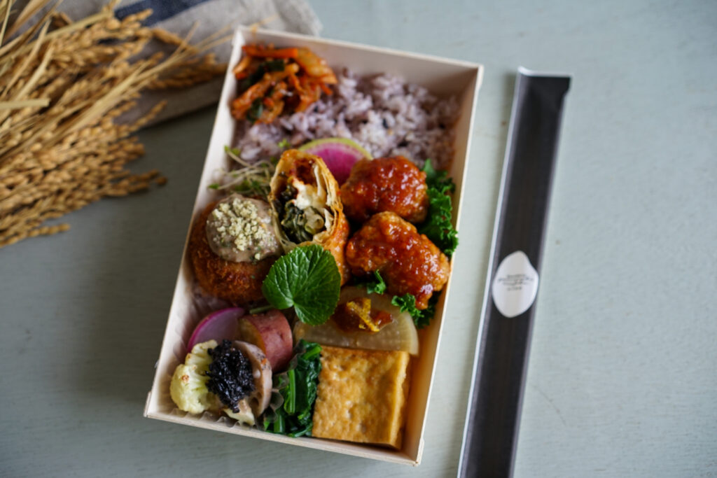 季節野菜の発酵副菜を彩りよく詰め込み、栄養バランスと満足感のどちらも両立。
