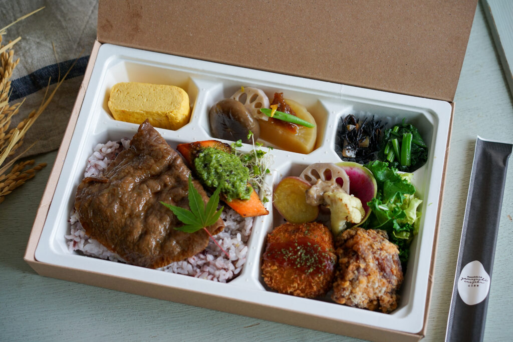 甘辛い発酵すき焼き煮と、大葉の香りが広がる鮭が主役の、食べ応えのある一箱です。副菜には季節の発酵おかずを添え、栄養バランスも◎。会議や研修、特別なランチにも安心してお選びいただけます。